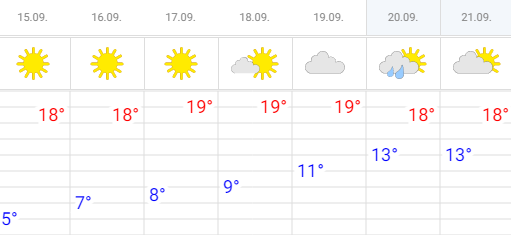 Со вторника вместе с южным ветром в республику начнёт поступать более тёплая воздушная масса. Заморозки прекратятся, а в дневные часы столбики термометров поднимутся до отметок 18-23 градуса выше ноля. В четверг в тёплом секторе приближающегося атлантического циклона небо затянут облака, но кратковременные дожди пройдут только в субботу.