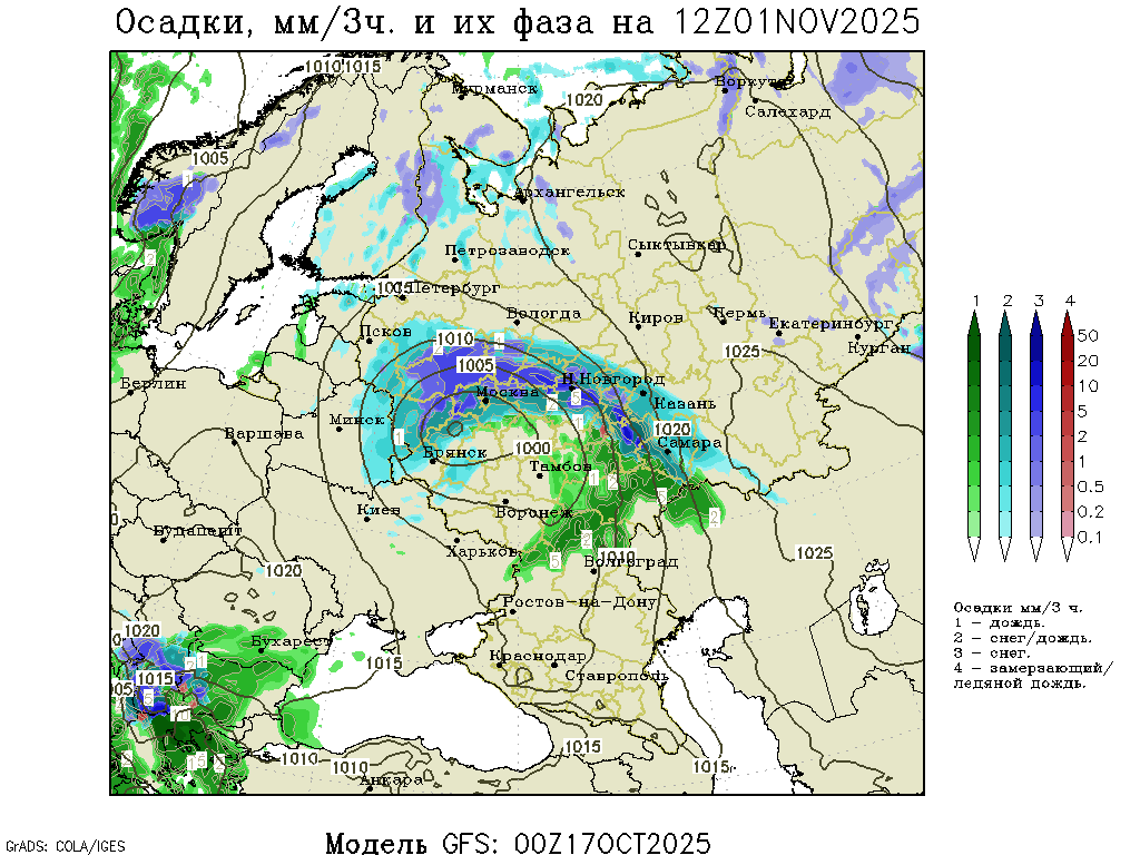 Судя по прогнозам, в ближайшее время погода будет всё больше перестраиваться на осенний лад. Из-за поступления на Европейскую территорию России северной воздушной массы активизируются циклоны — и со стороны Атлантики, и с южных морей. Поэтому дожди станут идти всё чаще, а временами к каплям дождя станут примешиваться первые снежинки.