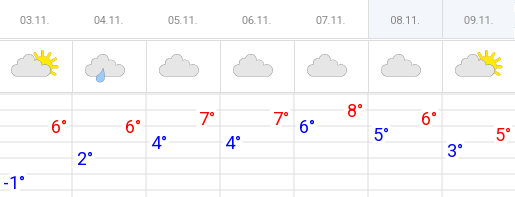 По предварительным прогнозам, в следующий понедельник ожидается ещё один кратковременный всплеск тепла, который станет заключительным аккордом осени. С 12 ноября в Чебоксарах установится стабильная минусовая температура воздуха. При этом холода могут прийти без снега — во второй декаде месяца бразды правления погодой на Европейской территории России перейдут к блокирующему антициклону из Скандинавии.
