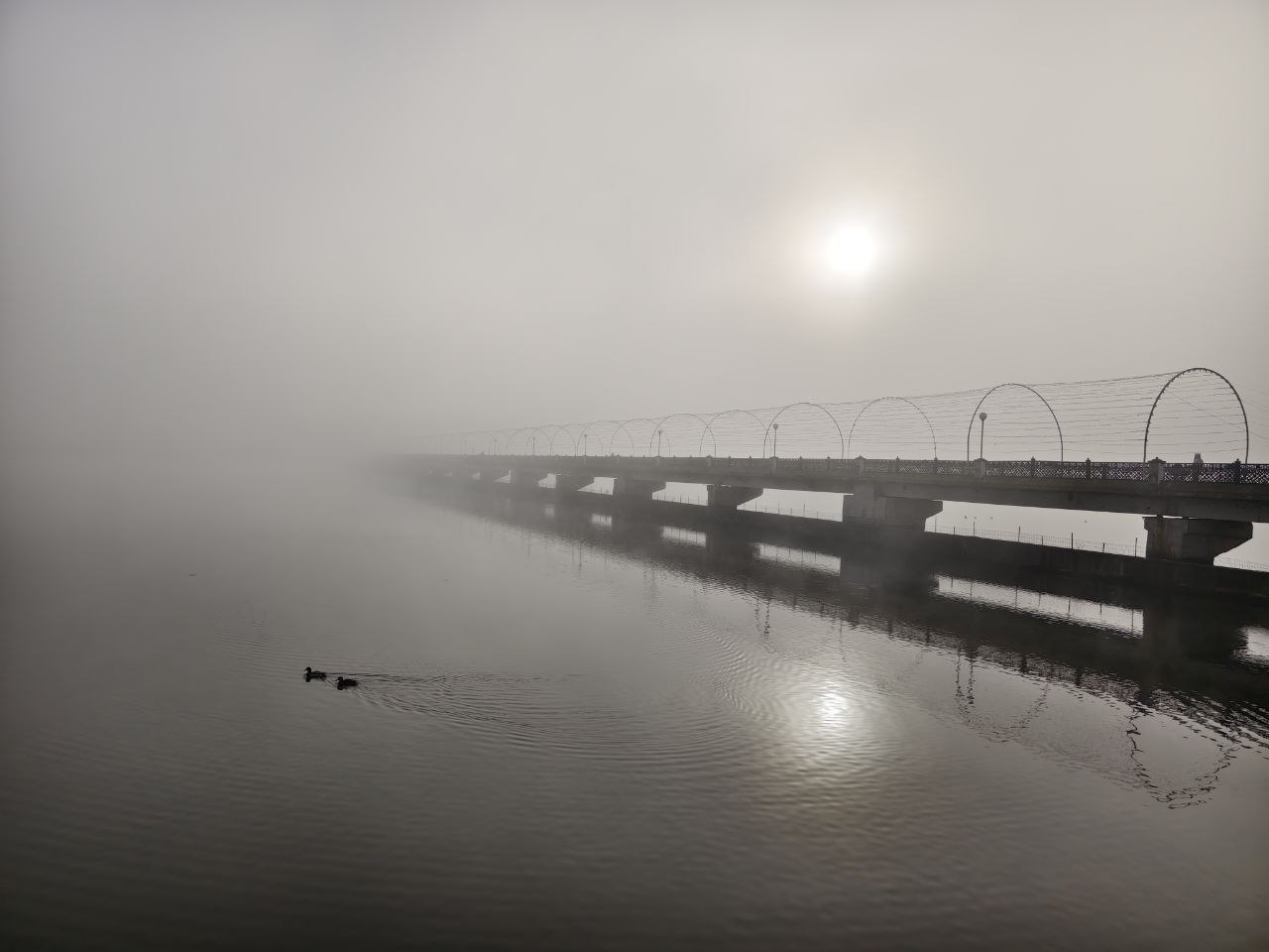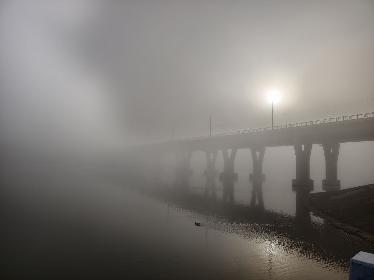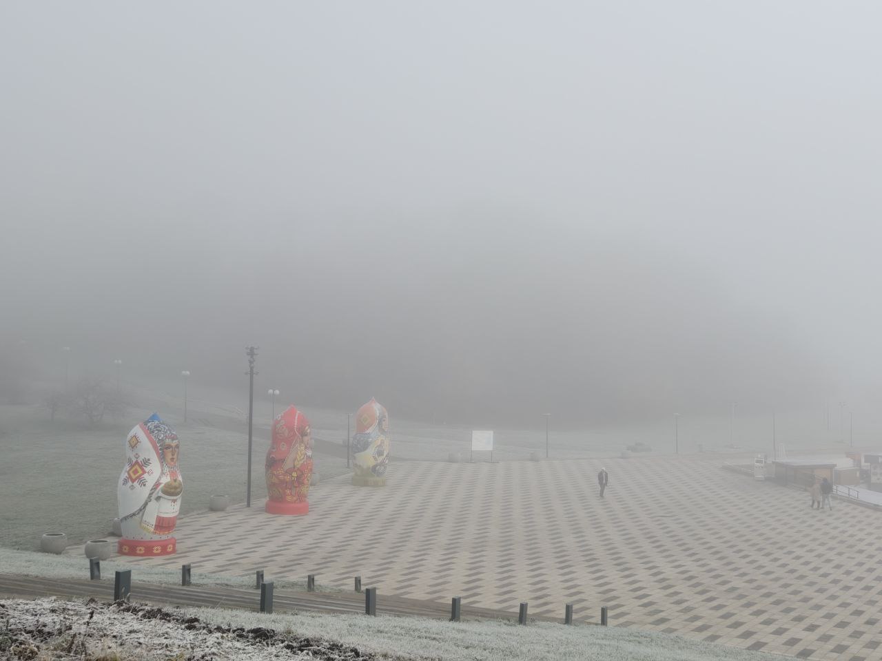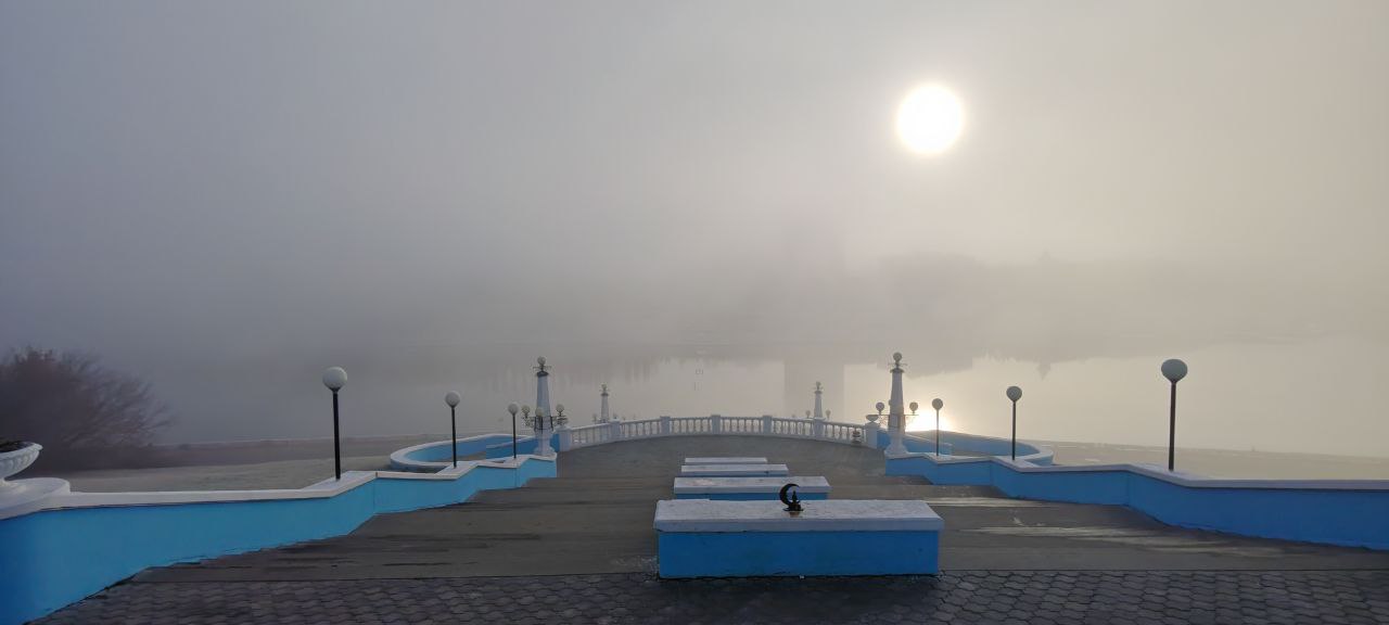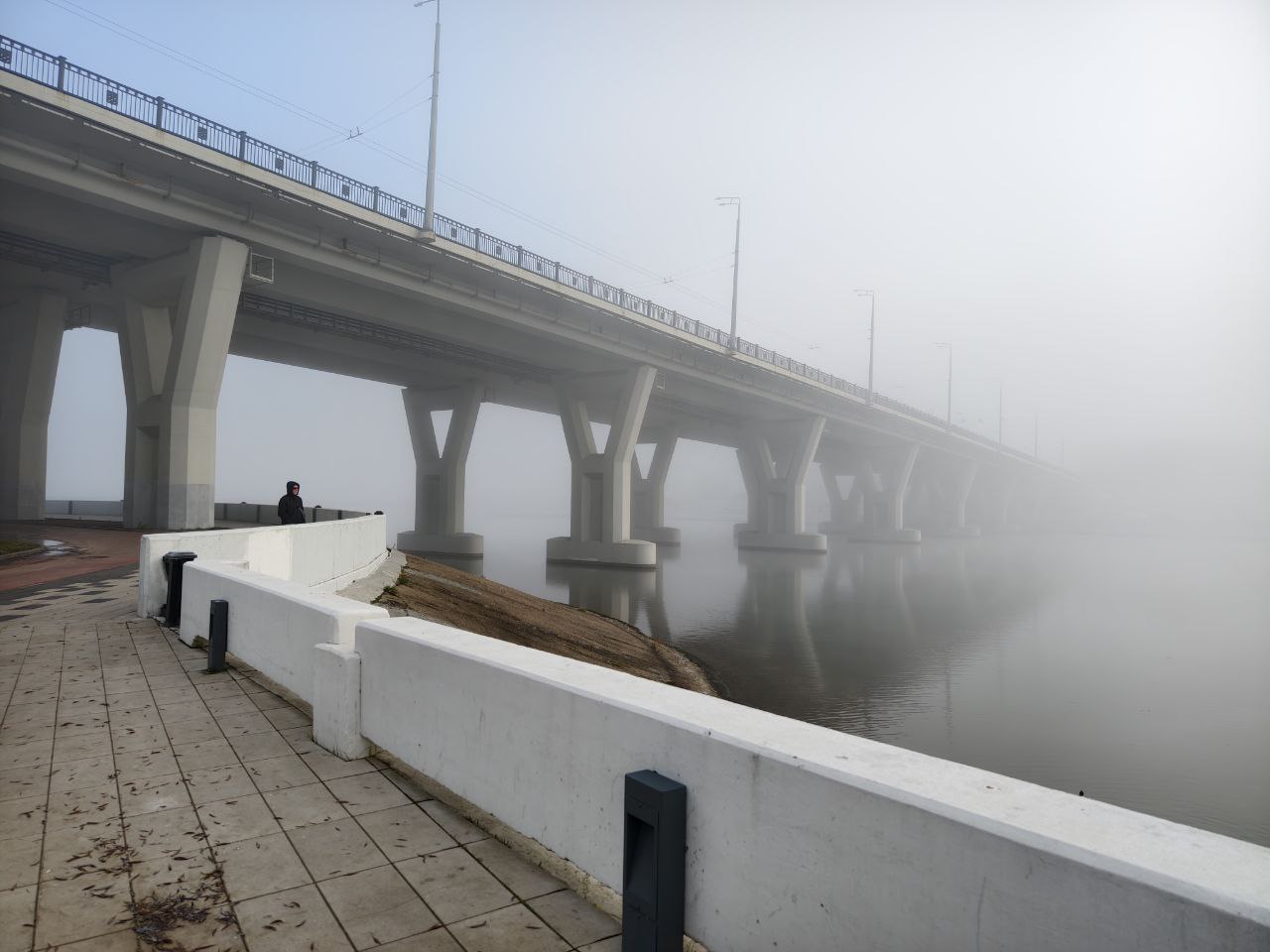 Но с выходом солнца туман не рассеялся, и плотная дымка уже затянула чебоксарский залив. Такие виды там в данный момент.