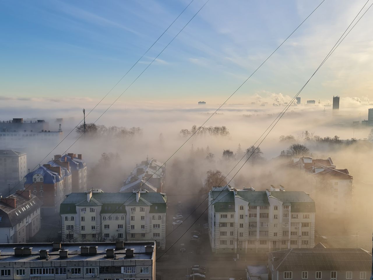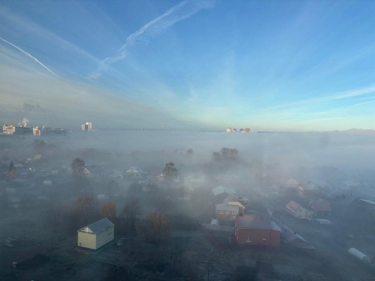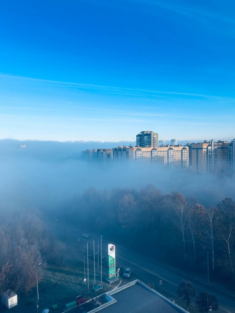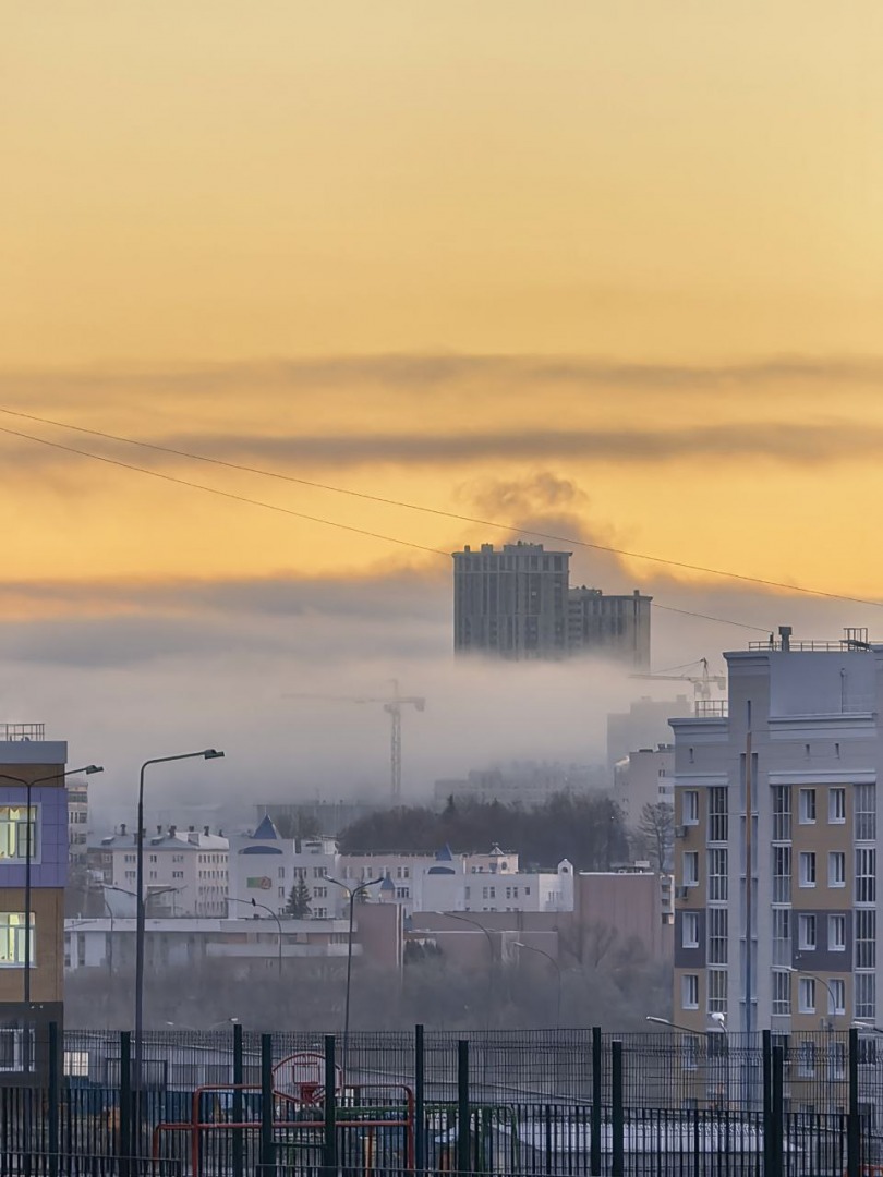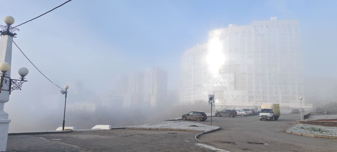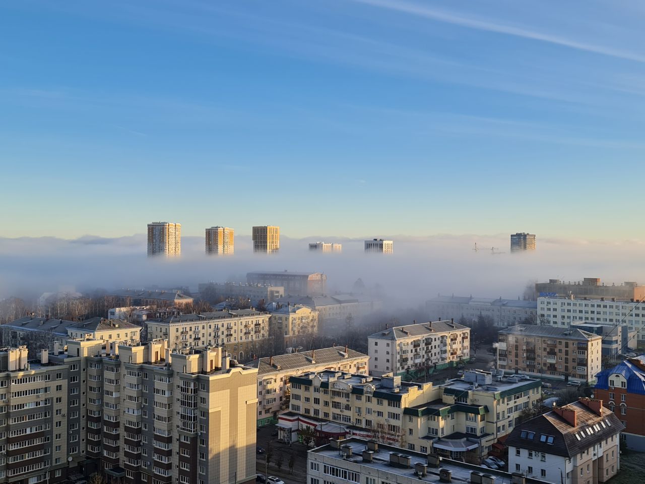 Сегодня Чебоксары проснулись в объятиях утреннего тумана. Дома и улицы утонули в молочной дымке. Особенно завораживающе это выглядело с высоты.