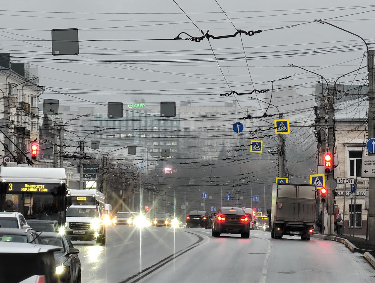 Погодой на Европейской территории России сейчас управляет малоподвижный антициклон. В тёплое время года это гарантировало бы нам сухую и солнечную погоду, а зимой — крепкие морозы. Но сейчас область высокого давления наполнена тёплым воздухом, что приводит к формированию на небе так называемой инверсионной облачности, которая закрывает собой солнце. Кроме того, из этих облаков периодически идут небольшие осадки, преимущественно в виде моросящего дождя, а верхушки многоэтажек закрывают собой туманы.