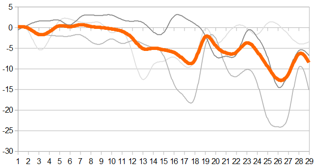 По моим расчётам, период с декабря 2025 года по февраль 2026 года ожидается на градус теплее климатической нормы (не на четыре, как год назад). Причём среднемесячная температура воздуха будет превышать норму все три зимних месяца. Да, при таких отклонениях вполне вероятны оттепели. Но это не значит, что на улице будет твориться такое же безобразие, как в ноябре. Нет — погода ожидается вполне зимней, с морозами, снегом и метелями.